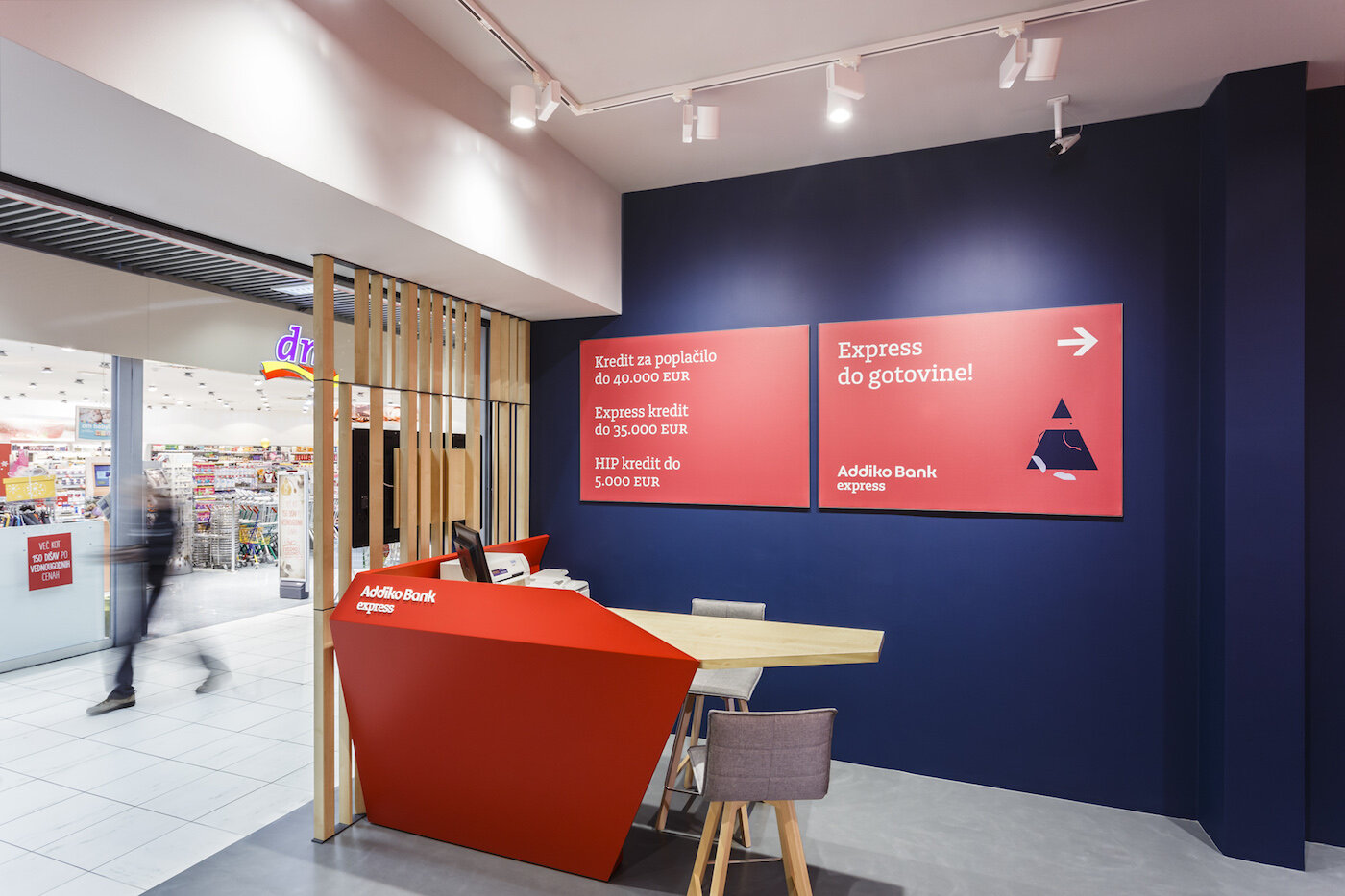 We developed this novel retail concept based on insights from market analysis, user habits and needs. The key characteristics of the spatial concept of Addiko Bank Express are clarity, accessibility, and speed.