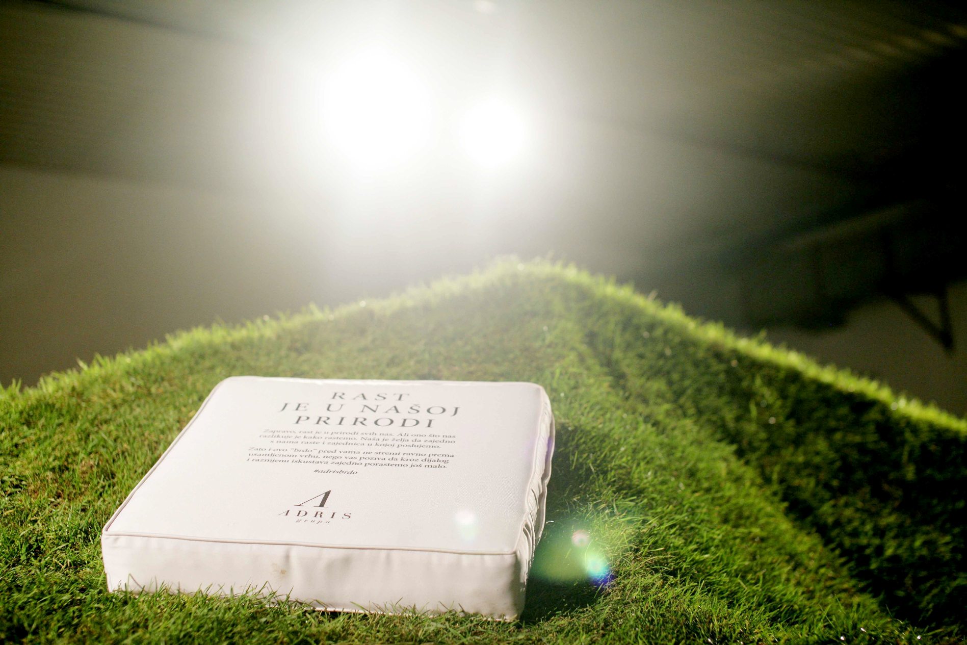 The idea of growth, through identification and nurturing of the potential was transformed by the living, organic installation with growing grass. Unlike the previous Adris promotional stands at the WMF in Rovinj, where the pavilion was primarily a visual experience, this time focus was on the phenomenon of growth.