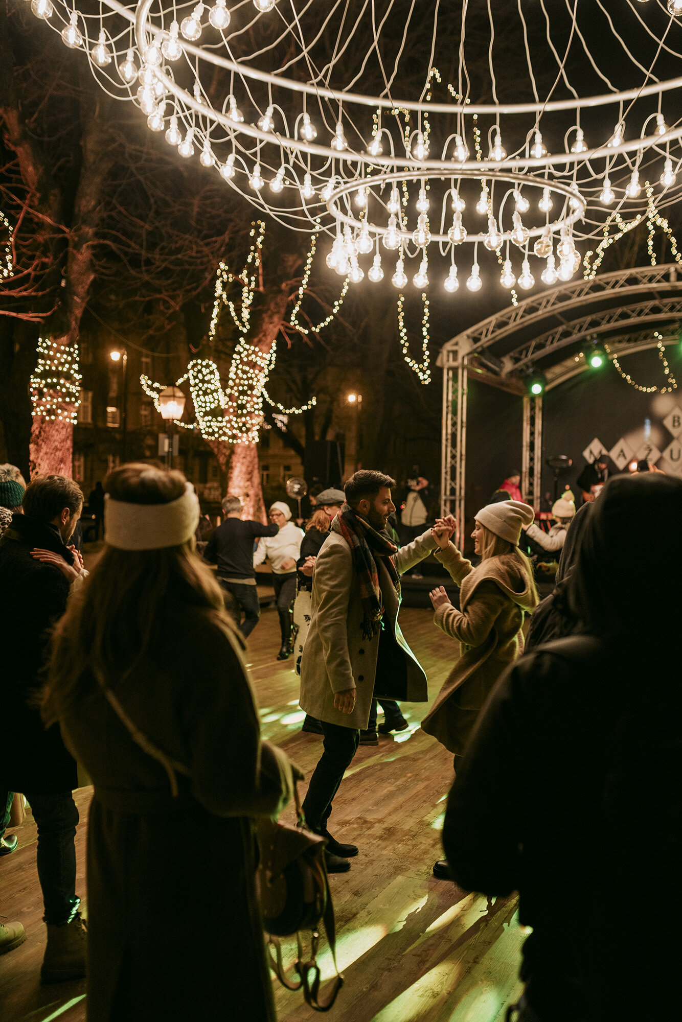 Idea for the second Advent location was inspired by history. In the early 19th century, the highly popular restaurant "Kolo" operated on this location, organizing music and dance 'day and night, summer and winter.' Through the joint efforts of BŽG, Brigada and TZGZ, the idea was realized, reviving a cult location in the history of Zagreb. Attention was given to the smallest details (such as the color of the light bulb) to create a warm Advent atmosphere. The music program is mainly based on classical and jazz, and there will be no gastronomic offerings at the Ball because the primary goal was to create new Advent locations that are significantly different from all others. The biggest challenge was to construct and transport the central motif of the ball – a huge chandelier with a diameter of almost five meters, weighing a staggering 200 kilograms and consisting of around 200 light bulbs. However, there are also many small logistical challenges when it comes to an event based on a daily program. The modern version of this iconic historical place is primarily intended for an older audience, but it is expected to generate interest across diverse generations."